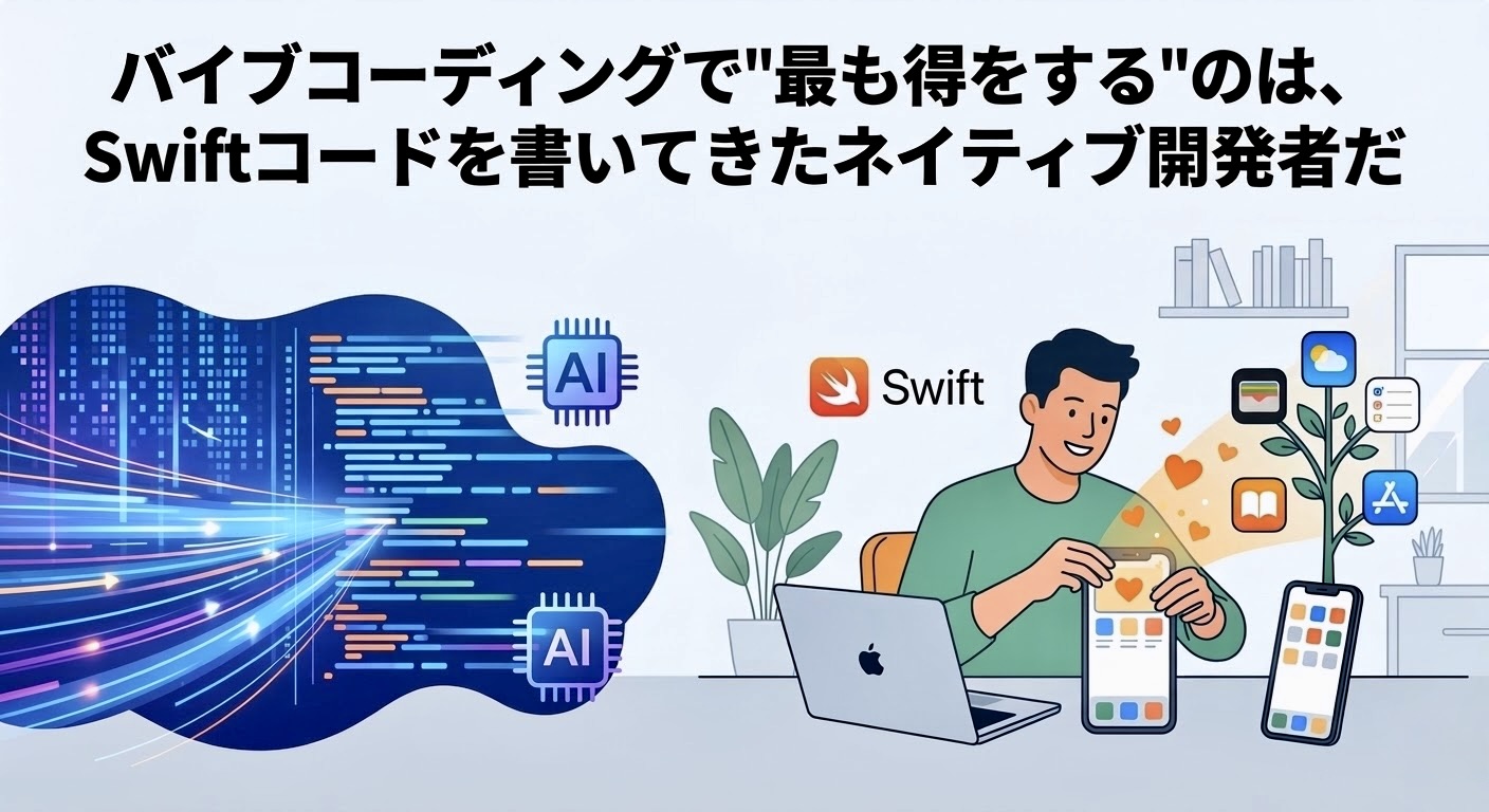 あなたがSwiftに費やしてきた時間は、コードを書く速さのためにあったのではありません。良いアプリとは何かを理解するための土台だったんです。 その土台は、バイブコーディング時代にこそ、最もレバレッジが効きます。