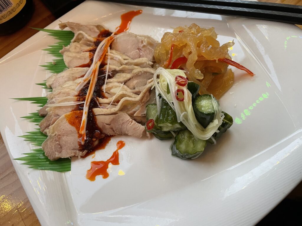 前菜三種盛りと、チンジャオロース〜。三種盛りはすべて絶品でした。